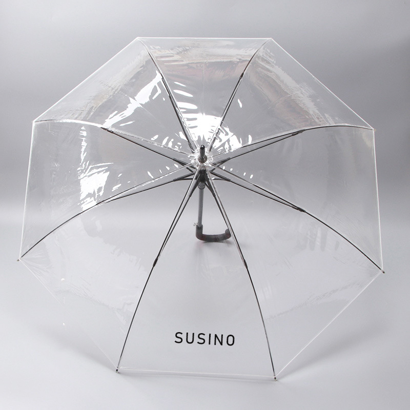 Custom Straight Golf Promotion Clear Transparent Rain Umbrella Clear transparent rain umbrella feature:Style: Long Handle Automatic UmbrellaFunction: Environmental protectionTransparent material customization: POE PVC TPUFabric can be customized: white, black, color, color change, dazzlingSize can be customized: 21 23 25 27 30 32 34 inchesFrame:Glass fiber ribsCustom logo printing patternApplication: unisex,gifts,event,wedding Clear transparent rain umbrella details: