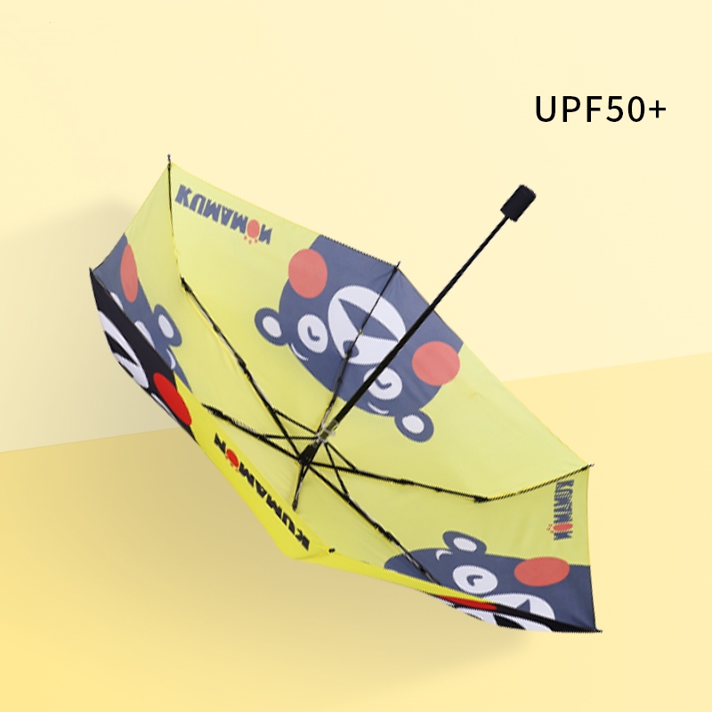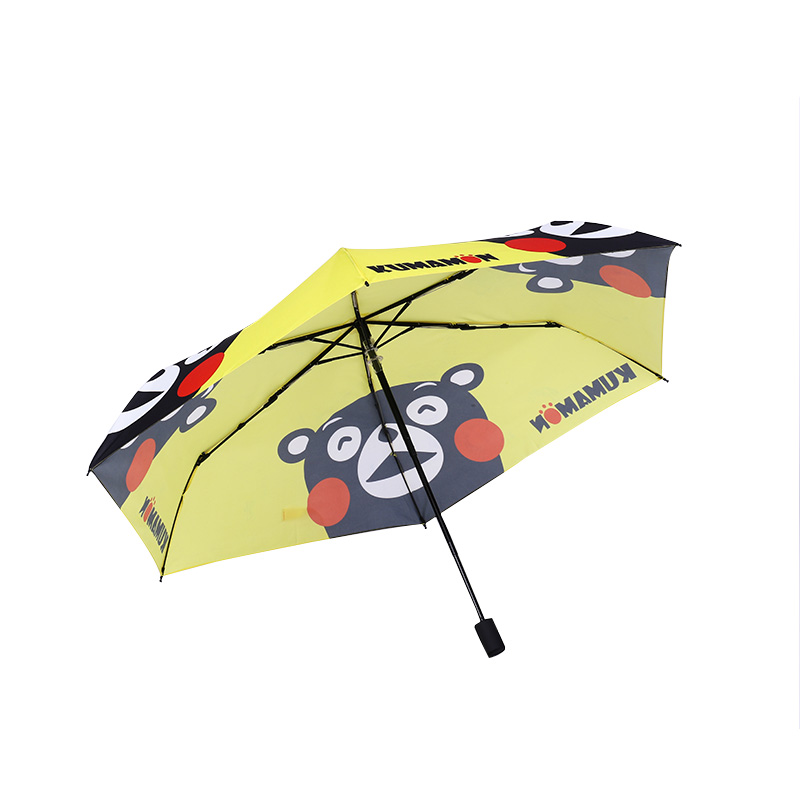 Kumamon Auto Open Sunshine Rain Folding Umbrella Kumamon Folding Umbrella details:Type:Compact sun/rain umbrellaFunction:FoldingControl:Manual /auto openFabric:210T pongee /Black vinyl with UVHandle:ABSFrame:Glass fiber ribs,aluminum alloy shaftSize:Can be customizedLogo/Printing:Customized Designs AcceptSun protection indexUPF50+Weight3 fold 215g5 fold 176gKumamon Folding Umbrella feature:Effectively block ultraviolet rays UPF50+Use UV sunscreen coating technology, sunscreen at the same time has a super anti-splash coating, with its own cleaning function, giving you more peace of mindFrosted umbrella handleProcess treatment at the handle of the umbrella, matte texture, comfortable to holdSunny and rainy dual purposeVinyl sunscreen, lotus leaf water repellentAutomatic opening and closing, one-button switch, easy to use One-handed control, open and close at willLightweight bracket, firm support, selected aluminum alloy + fiber material, lightweight umbrella body, more impact resistanceFiber Umbrella Tough and durable, made of fiber material, 180-degree folding, no damage, no fear of strong storms and rainsKumamon Folding Umbrella detail show: