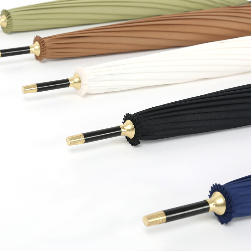 Black and gold umbrella hat, elegant and practical coexist High-quality copper rivets to improve the firmness and wind resistance of the rib link Leather handle, elegant and noble 16-ribumbrella, effective wind protection We are a professional umbrella manufacturer, offering a variety of styles to choose from, customizable, and logo-printable.