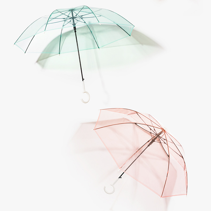 Portable Solid Color Long Handle Transparent Umbrella Long handle transparent umbrella adopts an arched umbrella surface structure and a deepened design, which can better cover the upper body, effectively shield the rain, and avoid the embarrassing situation of wet shoulders on rainy days.Long handle transparent umbrella features:Fabric:POEWeight: 310gType: Transparent umbrellaStyle: Auto openNumber of ribs: 8Color: yellow, blue, pink or customized