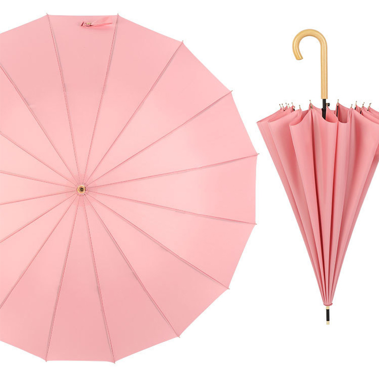 16 Ribs Large Golf Umbrella Windproof Business Gift Golf umbrella windproof features:Fabric: pongeeType of umbrella: long handle umbrella, golf umbrellaWeight: about 450gNumber of ribs: 16Umbrella ribs material: fiberglassColor: pink, Gray, blue, black, matcha color or customizedRemarks: The above dimensions and weights are all manually measured, and certain errors are normal, please understand.